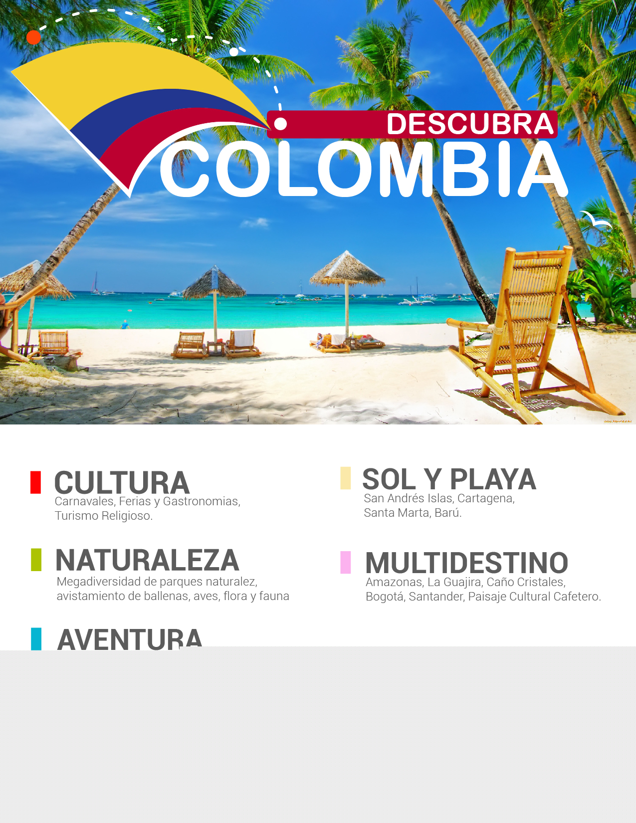 Somos una agencia de viajes especializada en familias, productos y planes en Colombia, estamos certificadas en las Normas NTS sostenibilidad turistica. www.viajesarrivando.com