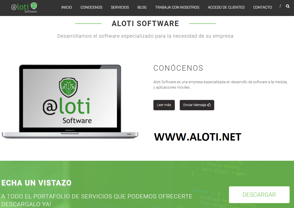 Aloti Software es una empresa especializada en desarrollo de software a la medida, y aplicaciones móviles. Nuestros ingenieros y desarrolladores son profesionales expertos con más de 10 años de experiencia cada uno en su campo dispuestos a crear soluciones específicas, confiables y con calidad. En cada uno de nuestros proyectos damos el 110% de nuestra capacidad, probamos nuestros desarrollos con métodos eficientes y eficaces buscando siempre la completa satisfacción de nuestros clientes.
