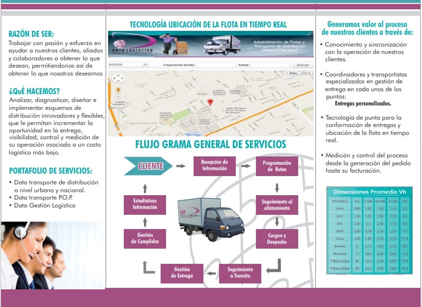 Especialista en transporte de carga seca a nivel nacional y distribución urbana, que busca hacer alianzas con sus clientes para mejorar sus costos logísticos y KPI asociados a la entrega de sus productos. Diseñando una red de distribucion para hacer de sus entregas una ventaja competitiva frente al mercado. Somos ese ALIADO logistico que busca una relacion gana-gana con sus clientes, que se preocupa por su trabajo y tus productos, que maneja indicadores de entregas superiores al 98%, que da visibilidad 100% del tiempo de donde esta tu producto y si fue entregado o no, el aliado que soluciona tus problemas logisticos de entrega a un costo razonable