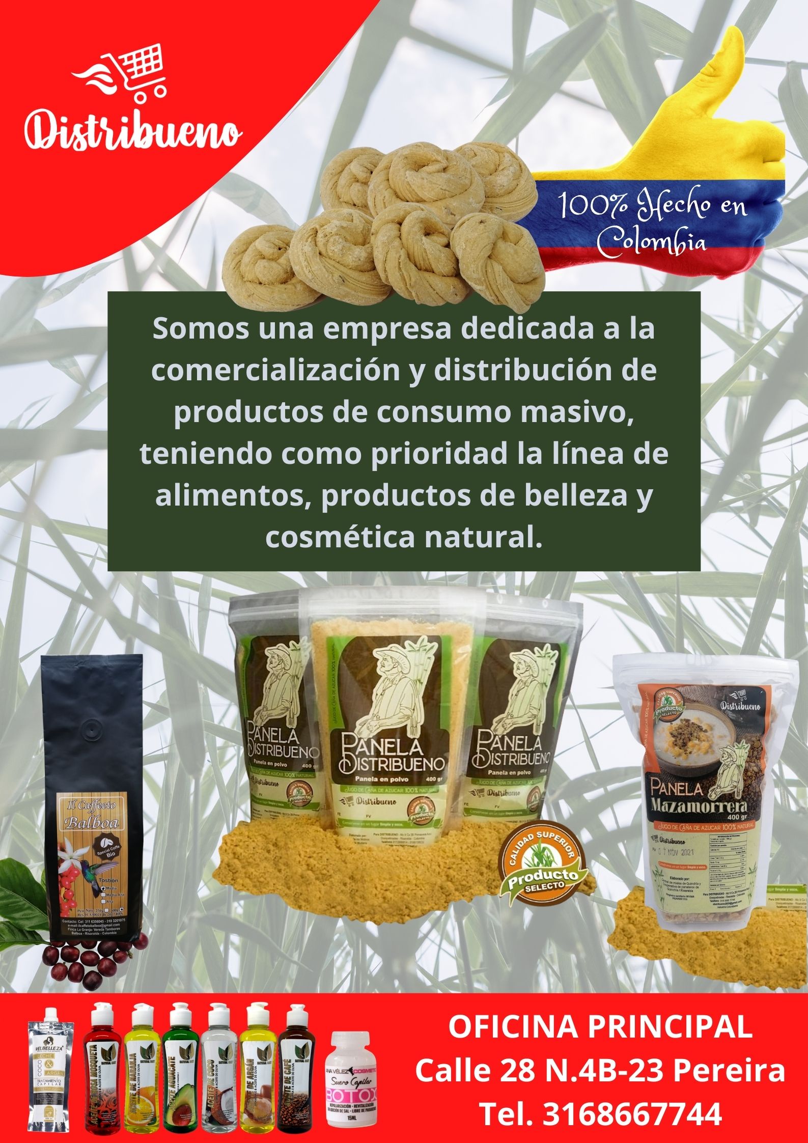 Distribución y comercialización de productos de consumos masivo, entre ellos la linea de alimentos, productos de belleza y cosmetica natural.