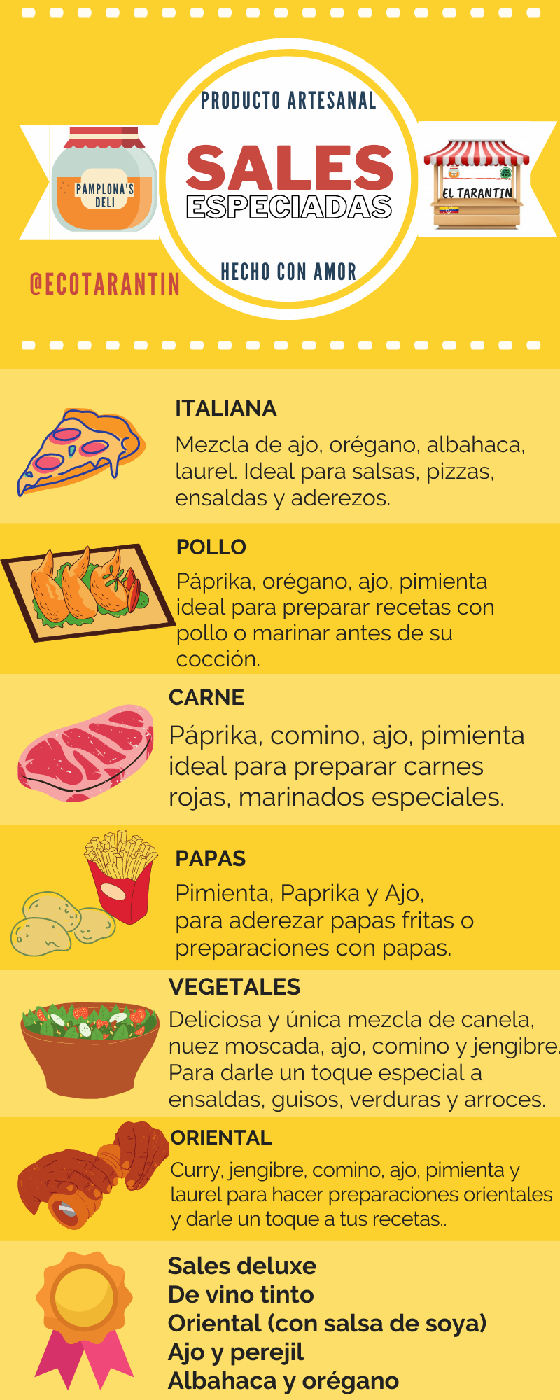 Somos una empresa que fomenta la cultura del aprovechamiento de las frutas, vegetales y hortalizas de temporada y de la región de Pamplona, los transformamos en Frutas Deshidratadas, Granolas, Mermeladas, Antipastos, Encurtidos y Sales Especiadas siendo éste nuestro producto estrella, una combinación de sal marina traída de la Guajira mezclada con vegetales, hortalizas y especies todas deshidratadas listas para aderezar preparaciones crudas o cocidas.