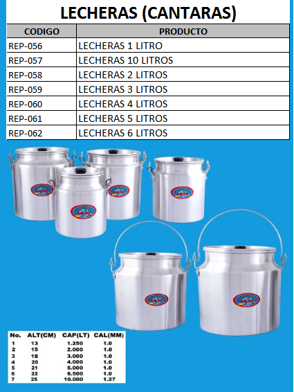 FABRICACIÓN DE PRODUCTOS EN ALUMINIO REPUJADO Y FUNDIDO (OLLAS, JARRAS, BANDEJAS, TORTERAS, QUESILLERAS, CALDEROS, CUCHARONES, VASOS, LECHEROS)