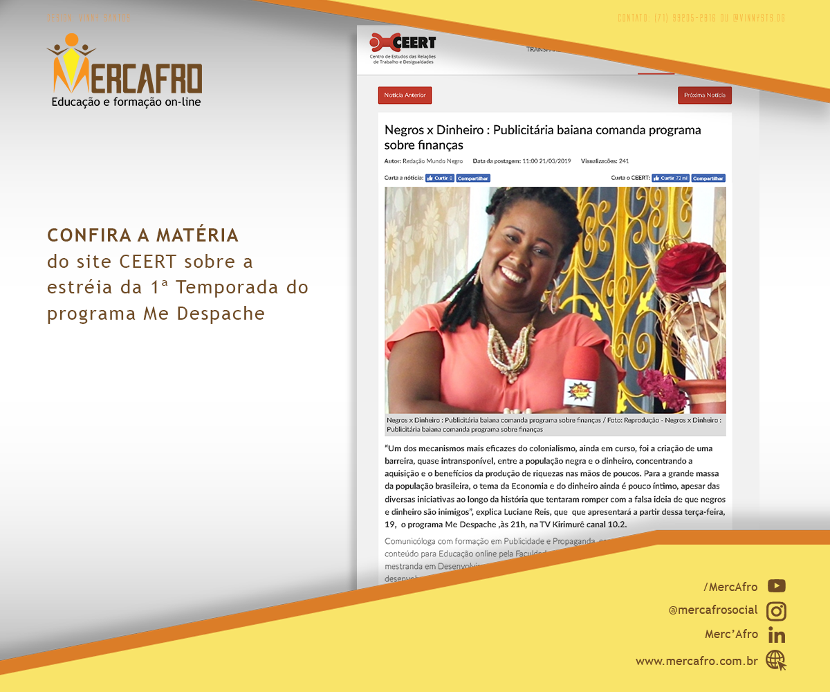 O Mercafro é uma empresa e-learning ( aprendizado eletrônico corporativo) que estrutura conteúdos educacionais de formação e qualificação empresarial na modalidade de formação a distância e produção de conteúdo voltado para educação corporativa, desenvolvimento pessoal e empresarial com viés racial para auto-aprendizagem, ou seja, de recorte étnico racial e de minorias.