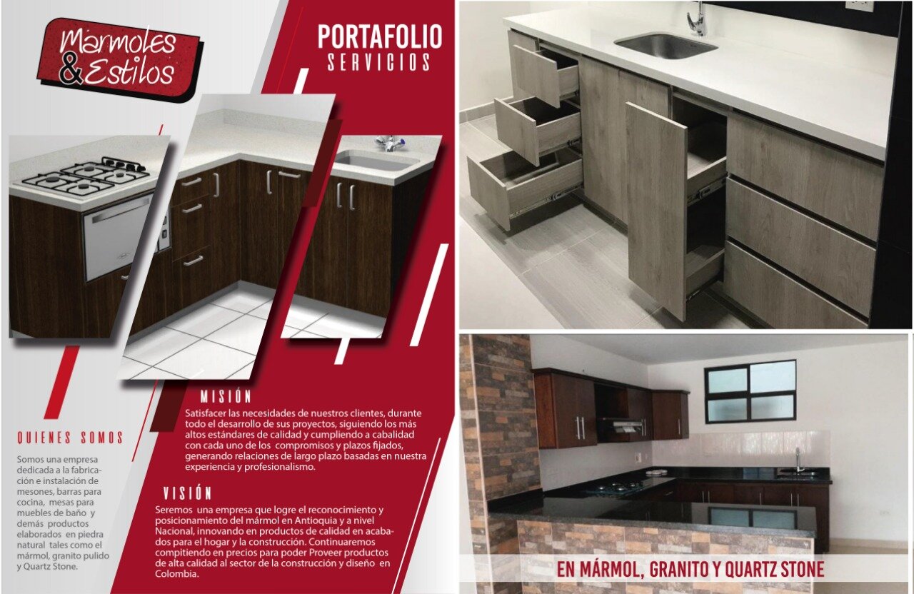 Mármoles y estilos es una empresa dedicada a la fabricación e instalación de mesones, barras para cocina, mesas para muebles de baño y demás productos elaborados en piedra natural tales como el mármol, granito pulido, Quartz Stone y piedra sinterizada. Elaboramos todo tipo de mobiliario en aglomerado RH y madera. closets, cocinas, escritorios muebles de baño y mucho mas