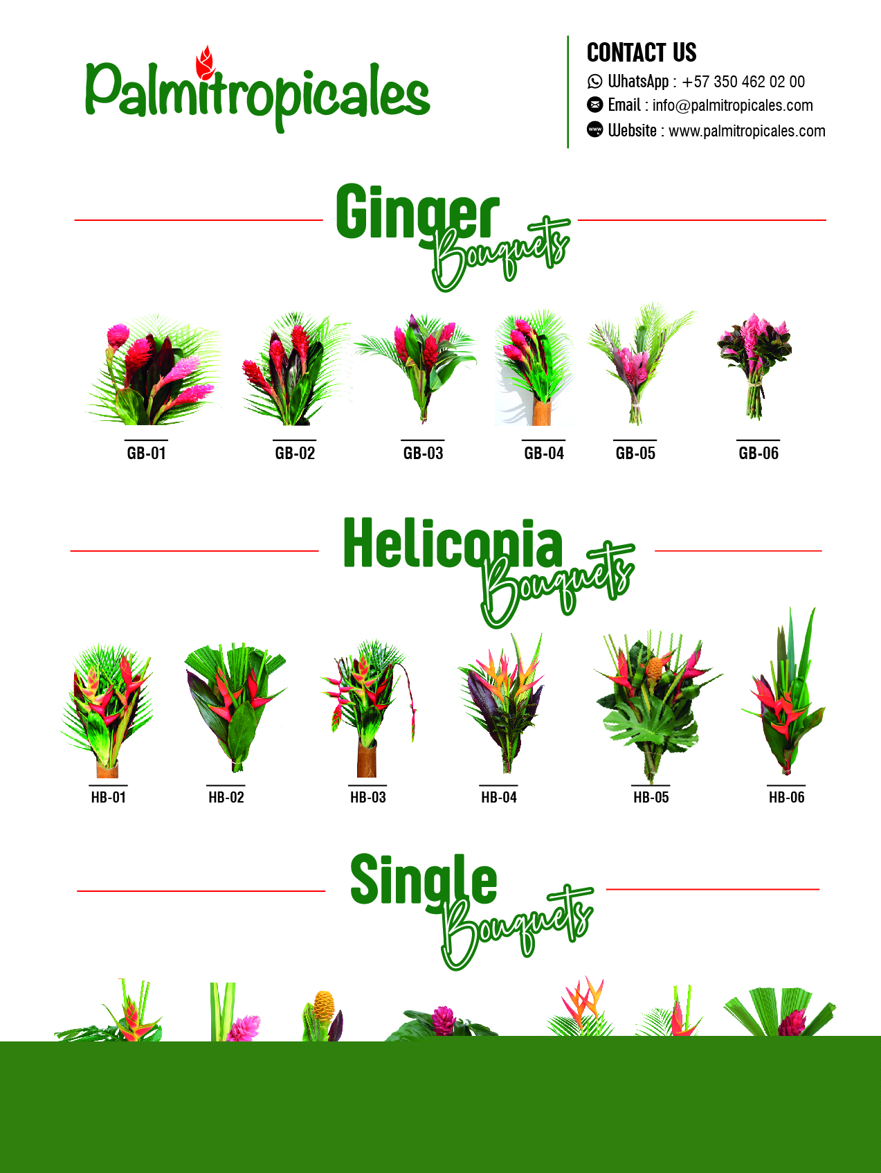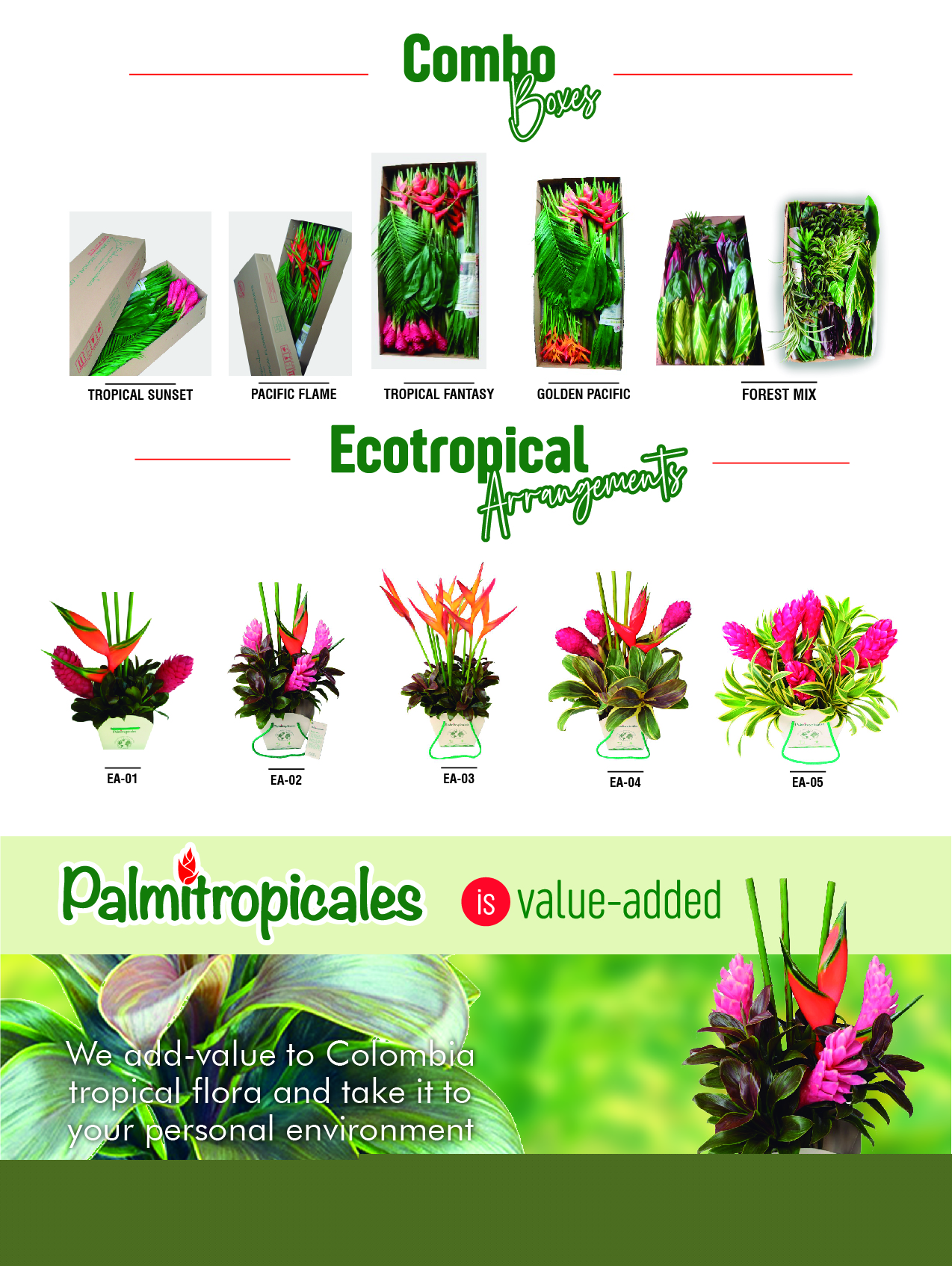 Ofrecemos flores y follajes tropicales en presentaciones individuales - bouquets, y en cajas de diversos tamaños, para , decoraciones corporativas y eventos especiales. Nuestros productos se están ofreciendo por comercio electrónico, desde el Cultivo a tu puerta.
