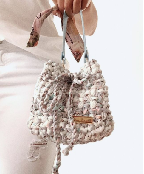 Tejemos bolsos, cojines y alfombras con la técnica de crochet moderno en materiales reciclables y algodones tinturados con tintas ecoamigables.