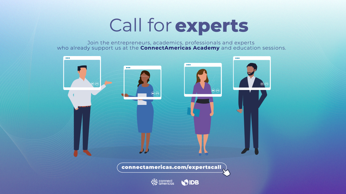 Join us at ConnectAmericas! We are looking for entrepreneurs, professionals, academics, and experts in various topics who want to be part of our network of knowledge partners and lead training and education sessions in the ConnectAmericas Academy.