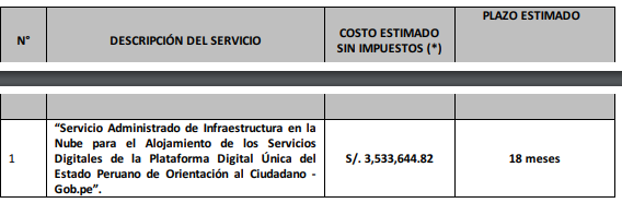Servicio Administrado de Infraestructura en la Nube para el Alojamiento de los Servicios Digitales de la Plataforma Digital Única del Estado Peruano de Orientación al Ciudadano - Gob.pe.