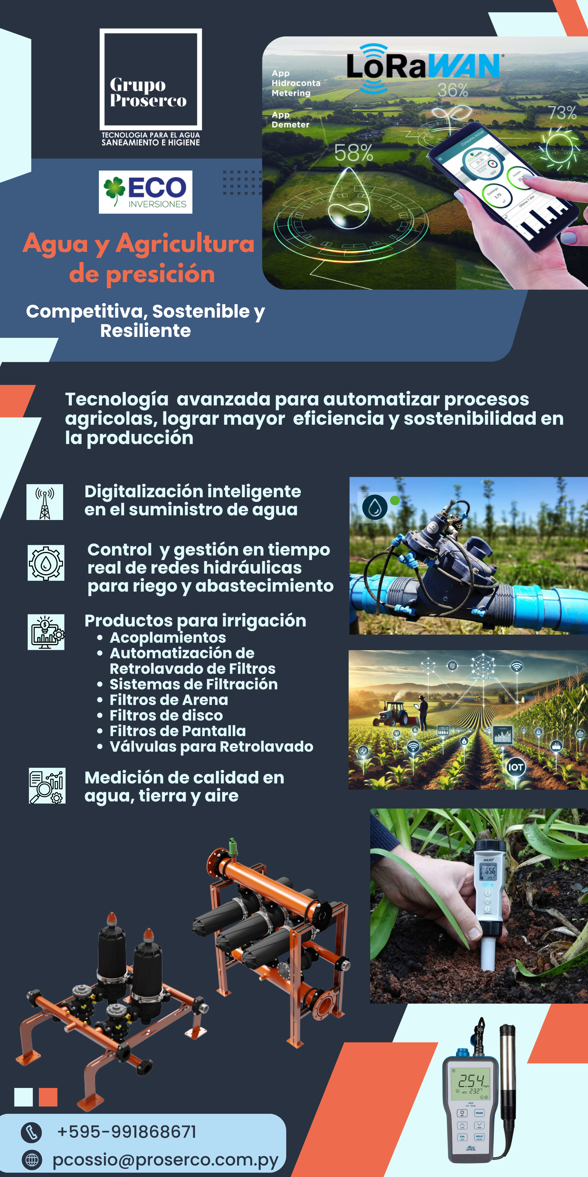 Grupo Proserco EAS es una empresa paraguaya especializada en tecnologías para el tratamiento de aguas residuales, potabilización, filtración, reúso de agua en procesos industriales y riego.Siempre comprometidos con la preservación del medio ambiente y las Energías Renovables a través de soluciones innovadoras, con viabilidad técnica y económica.Historia y FundaciónLa empresa se fundó el año 2018 como Empresa Importadora Unipersonal con el nombre de PROSERCO (Proyectos y Servicios Colaborativos) con el objetivo de proporcionar soluciones integrales para el manejo y tratamiento de aguas residuales. En Agosto del año 2023 formamos Grupo Proserco EAS.A lo largo de los años, Grupo Proserco ha logrado consolidar una amplia gama de soluciones y tecnologías que abordan las necesidades específicas de sus clientes, desde pequeñas empresas hasta importantes proyectos industriales y de infraestructura.Misión"Hacemos de la Tecnología y el Conocimiento Humano, los mejores aliados para solucionar los problemas que generan las personas y sus actividades en el Ciclo Natural del Agua"Grupo Proserco ha desarrollado capacidades que permiten estudiar, diseñar e implementar proyectos colaborativos. Importamos, Distribuímos, Instalamos, Operamos y Mantenemos equipos y tecnología específica para cada necesidad requerida por nuestros clientes en diferentes sectores.Acuerdos InstitucionalesEstamos convencidos que una alianza entre la Academia y las Empresas Privadas fortalecen el crecimiento de una Nación, estamos muy orgullosos de poder trabajar junto a Rancan Contractor Colombia SAS, Universidad Nacional de Asunción UNA y al centro Steinbeis Centro de Consultoría en Competencias Interculturales SBIK de Alemania. Apoyamos la investigación y valoramos la inclusión de nuevas tecnologías.