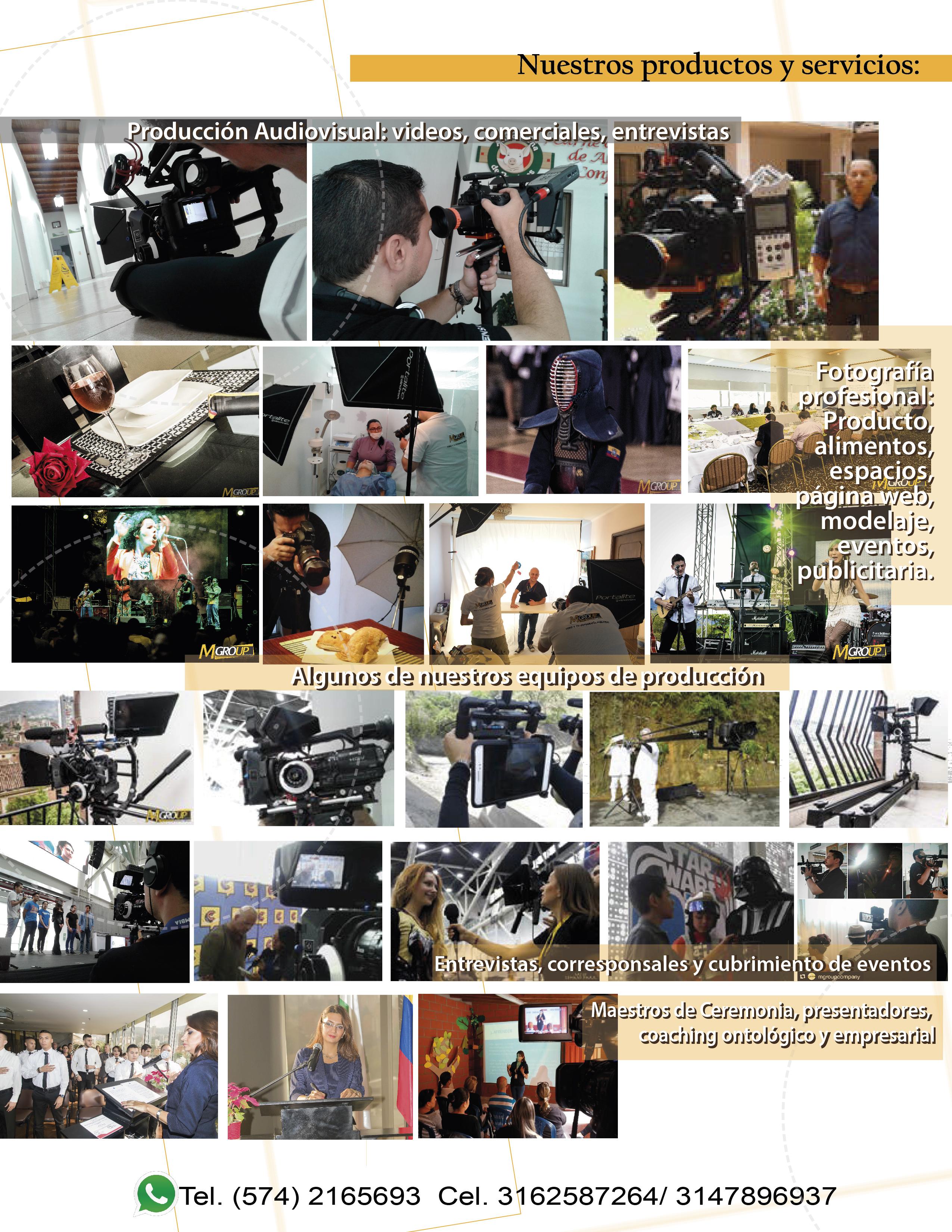 Somos una agencia de publicidad y medios. Trabajamos desde el manejo de la imagen corporativa en 5 áreas: * Produccion audiovisual y tv. *Fotografía profesional y publicitaria. *Publicidad y Diseño Gráfico. *Coaching Ontológico. *Eventos empresariales y sociales.