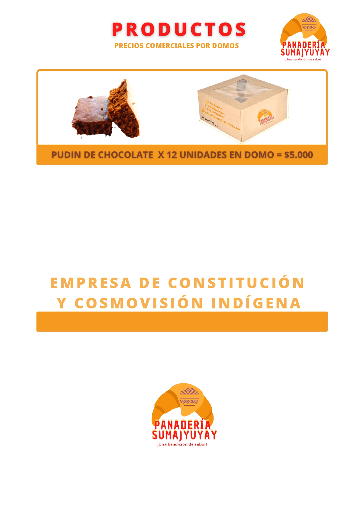 La Panadería Sumajyuyay es una empresa de constitución y cosmovisión indígena Zenú que ofrece productos de calidad que generan una dinámica económica que beneficia a toda la comunidad. Está enfocada en el apoyo sostenible a la comunidad Zenú, a todos los miembros indistintamente de la edad, para generar un impacto social, es una escuela de formación y liderazgo para los jóvenes del Cabildo a través de la economía sostenible. Es una empresa con altos estándares de calidad en sus servicios y contribuye al crecimiento económico y social de nuestras comunidades indígenas, formando a nuestro personal integralmente en su plan de vida.