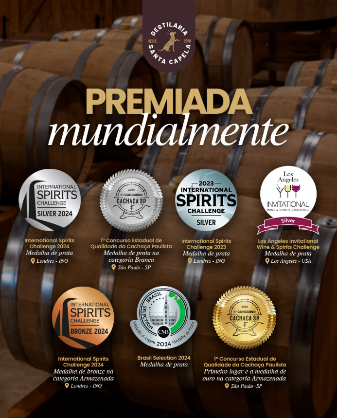 Santa Capela “Holy Chapel”! For all those who want to enjoy the best cachaça and want to enjoy a unique experience. Handcrafted and copper stills to express all the aromas and essences that we love so much in cachaça. We use the best technologies and modern practices to ensure the highest quality and purity of our cachaça, aiming to satisfy your pleasure responsibly.