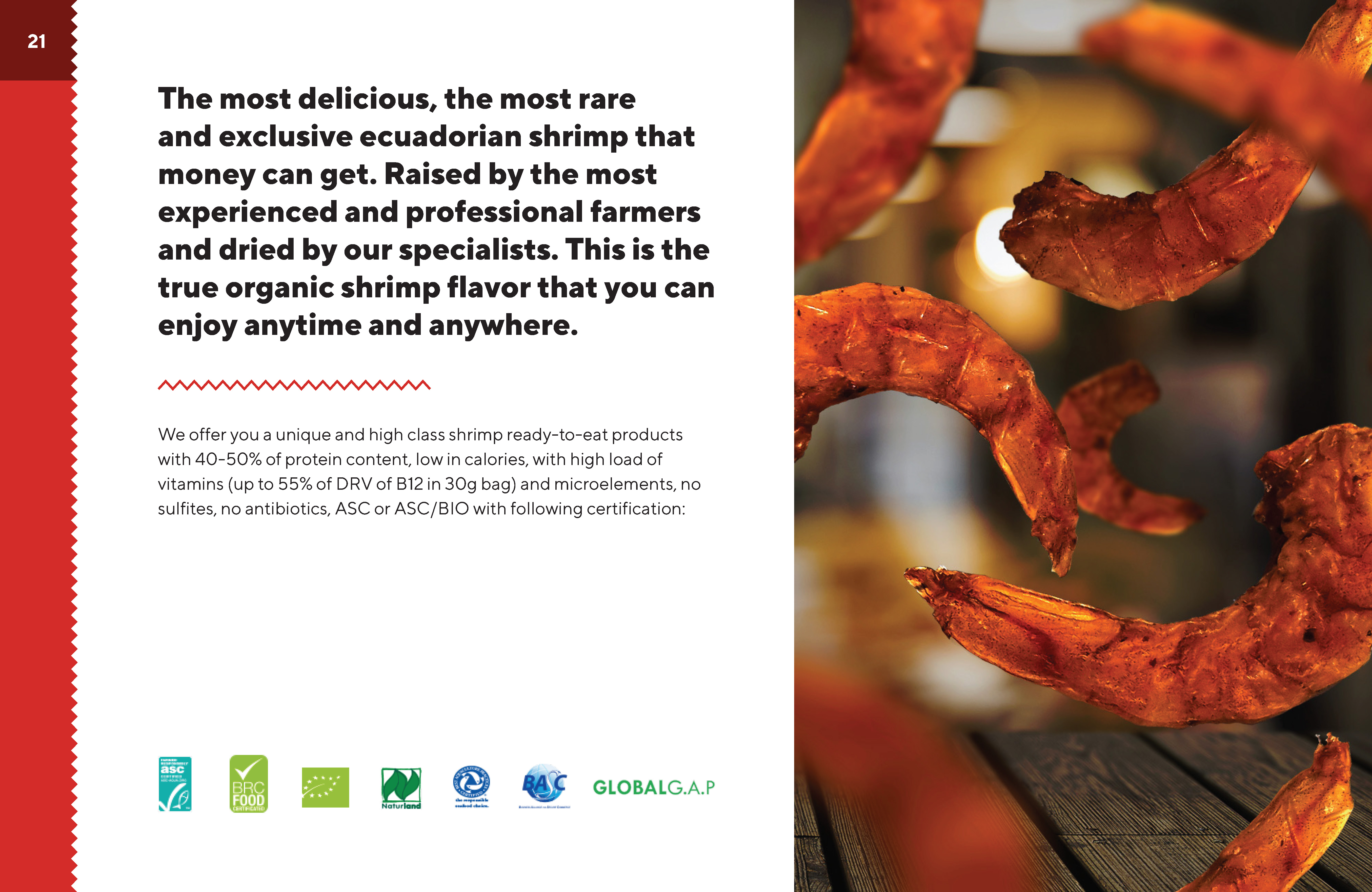 Unique dehydrated shrimp and meat foods. Ready to eat, long shelf life, no additives, no preservatives, no sugars. We work with the best ingredients from one of the cleanest regions on our planet.