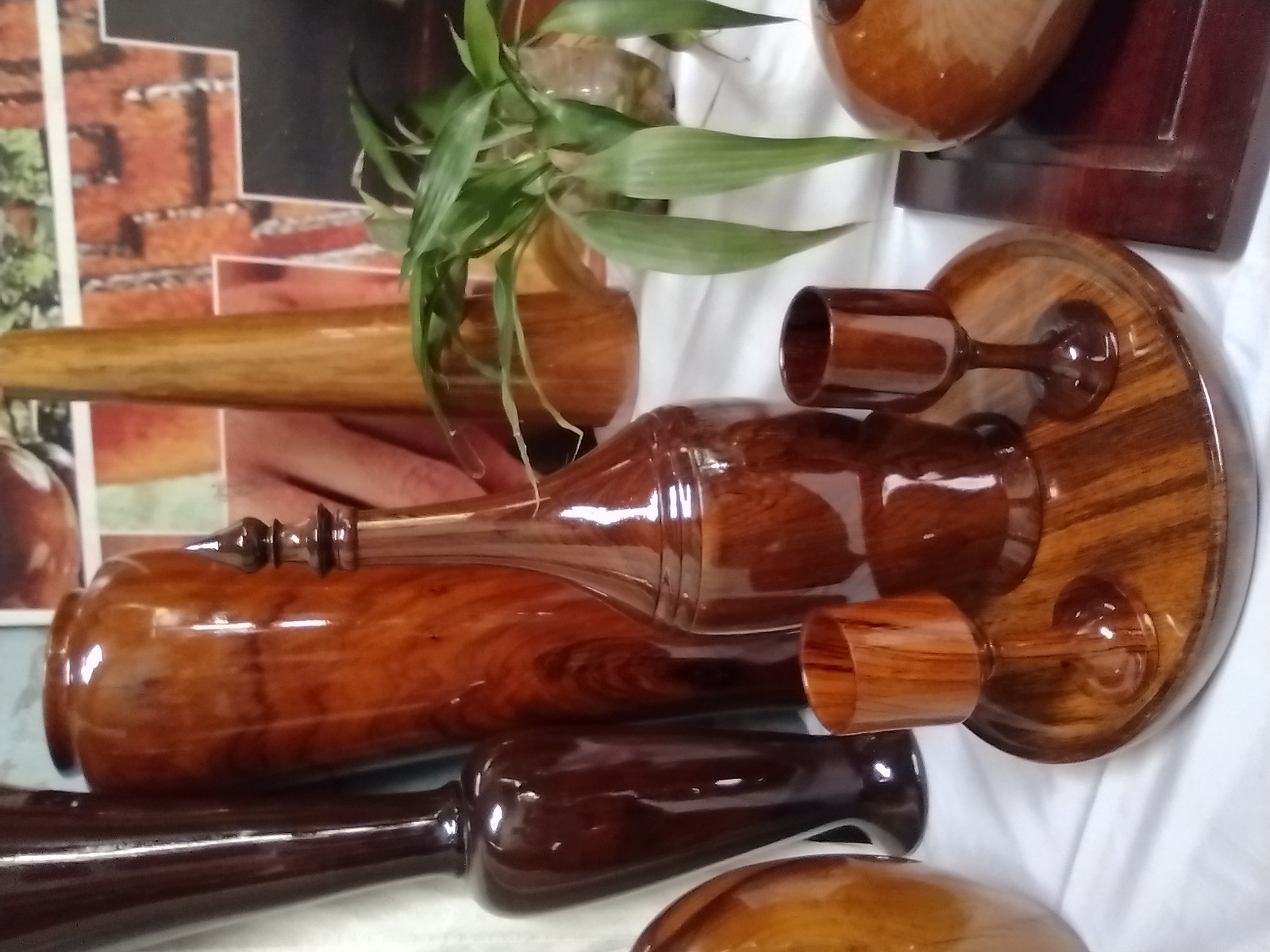 Productos utilitarios y decorativos en madera, tal como ensaladeras , azucareros, floreros , copas de madera,